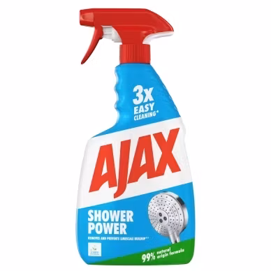 Ajax Shower Power Spray löser enkelt upp kalk utan skrubbande och ger en skyddande hinna mot uppbyggnad av kalk. Denna rengöringsspray är miljömärkt och hjälper till att tvätta bort bakterier.