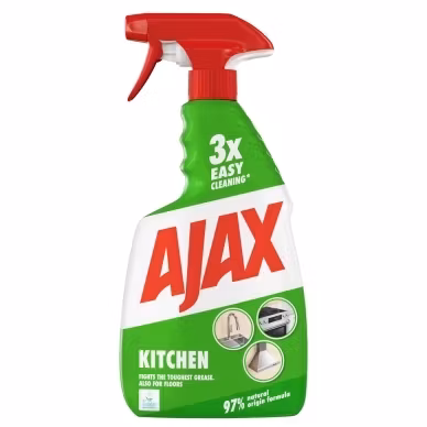 Ajax Köksspray är ett fettlösande rengöringsmedel för rengöring av alla hårda ytor i köket