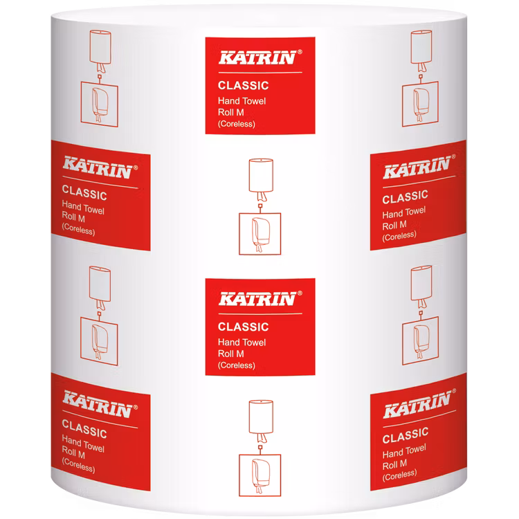 1-lagers handtorkpapper tillverkat av nyfiber. Varje torkrulle ger 320 meter/rulle, har en bredd på 205 mm och är hylslös